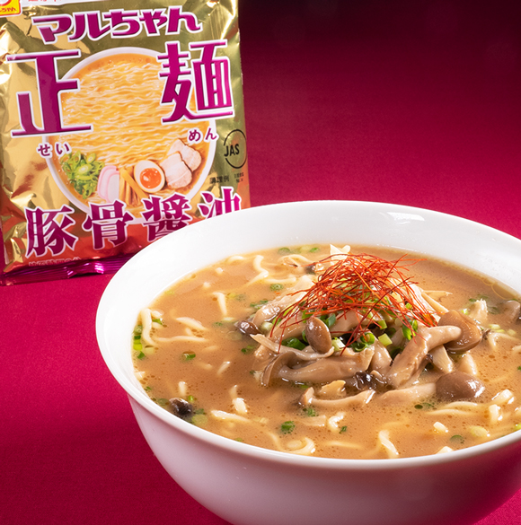 - 麺を丼に移し、スープを麺が絡むように軽くなじませたら、3を乗せ、青ねぎ、糸唐辛子をトッピングして完成です。